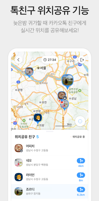 - 늦은밤 귀가할 땐 톡친구 위치공유 기능